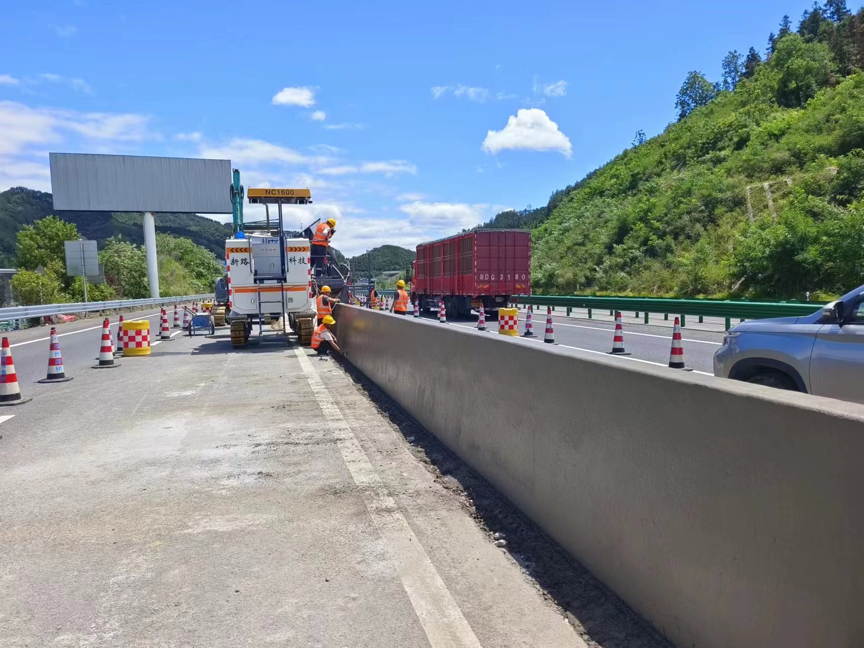 NC1300路緣石滑模機(jī)-山西晉城G207國道防撞護(hù)欄滑模攤鋪工程